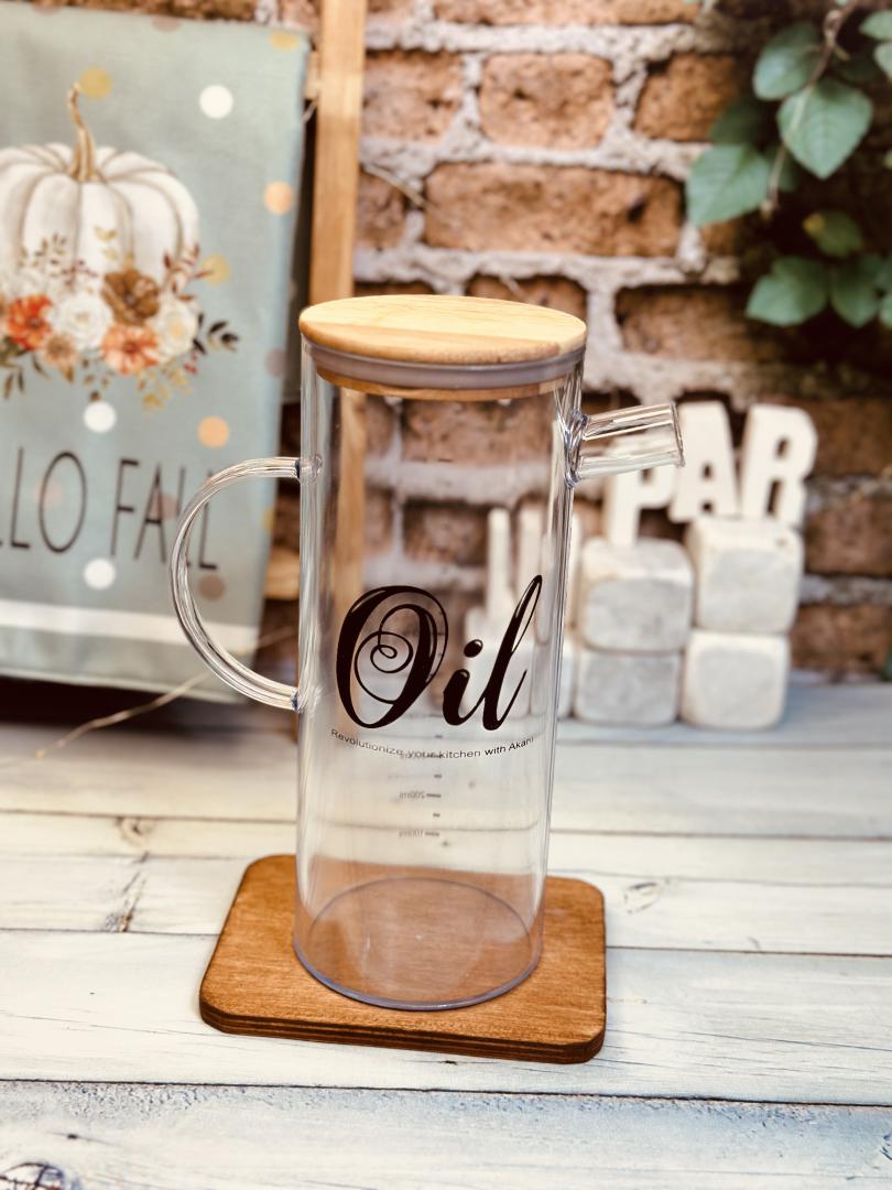 این ظرف روغن اکرولیک جایگزین مناسبی برای شبشه های روغن با ظاهر نا مناسب انددرب با چوب بامبو با واشر دارند و استفاده از آنهل بسیار آسان.کنار اجاق گاز میتوانید قرار دهید و هنگام استفاده دغدغه افتادن از دستتان و شکسته شدن ندارید زیرا جنس این ظرف روغن ریزاکرولیک و نشکن است.ارتفاع ۲۲ قطر ۹ سانت گنجایش ۱۰۰۰ میلی لیتر